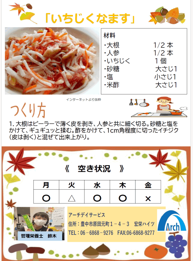 1日デイサービスからのお知らせ