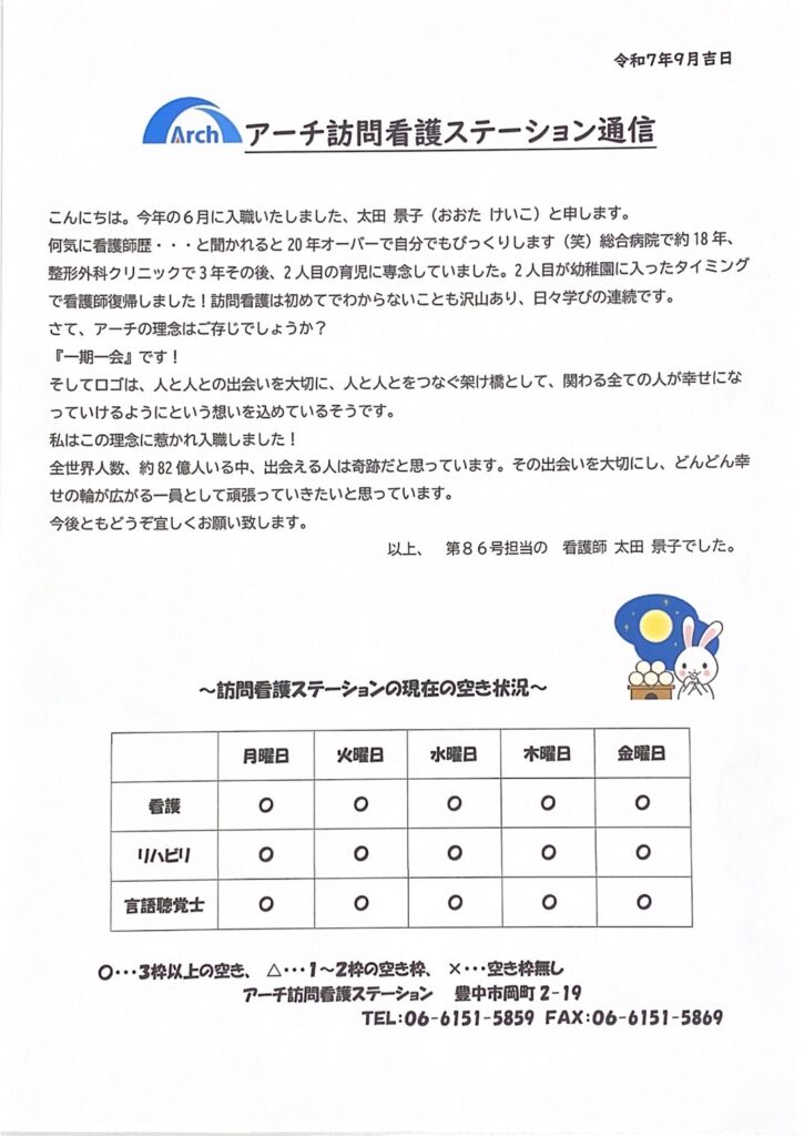 アーチ訪問看護ステーションからのお知らせ