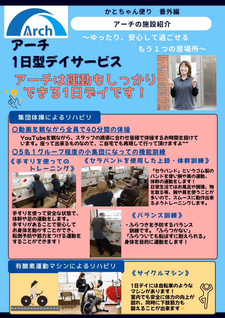 今回は番外編として「アーチデイサービス(1日型デイサービス)のご紹介」です!