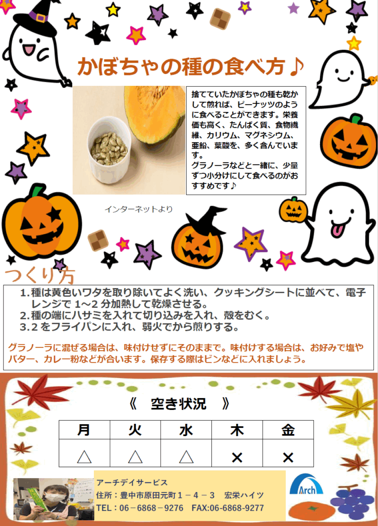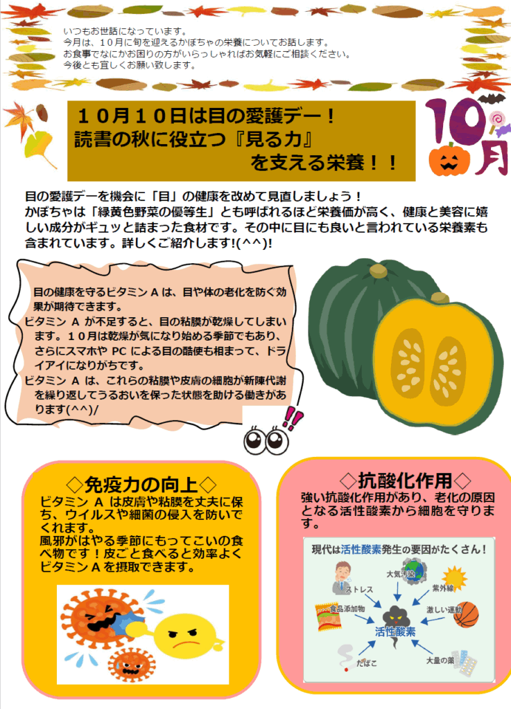 栄養便りでは「かぼちゃの種の食べ方」が特集されています!